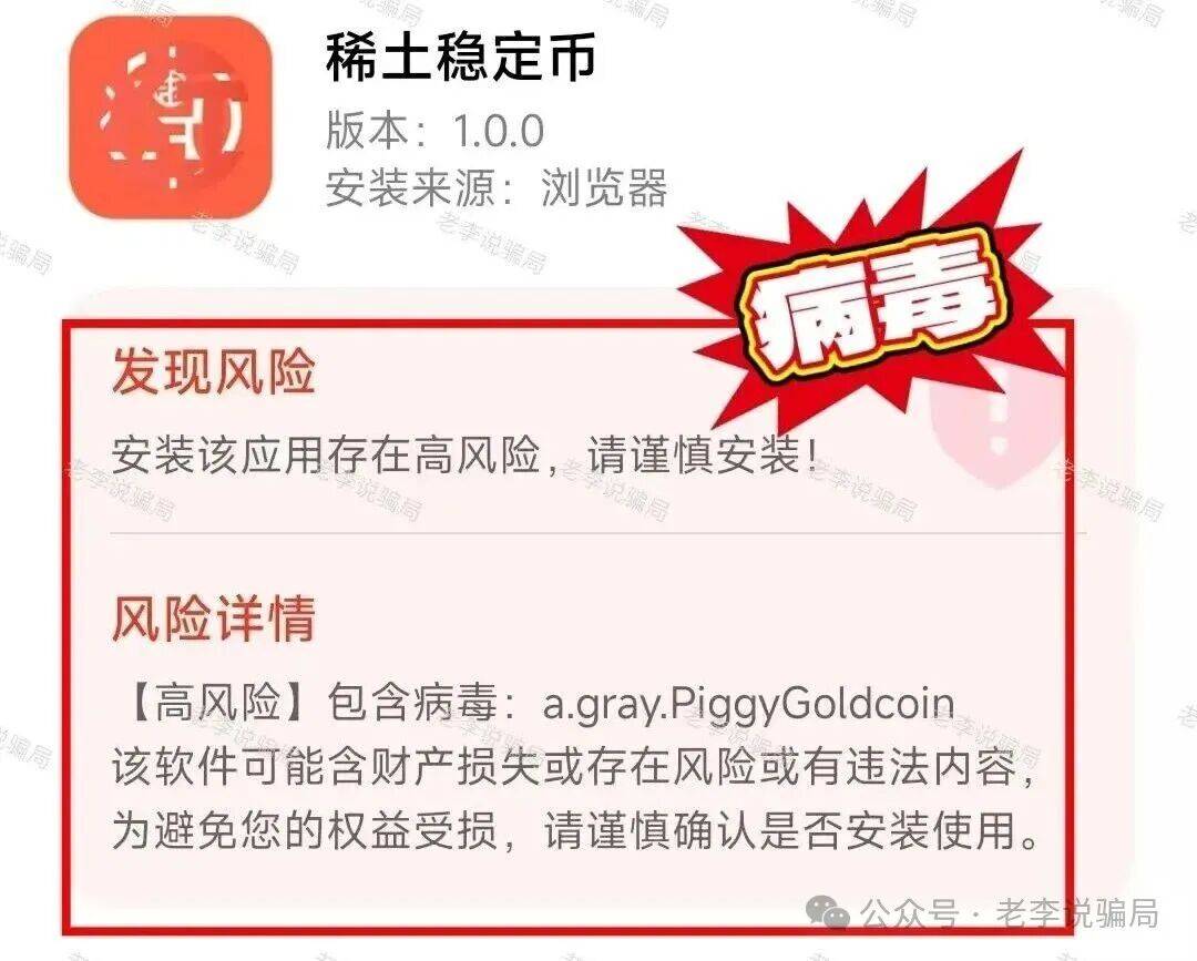下载提示未备案且携带病毒。稀土公司早就发布声明,从未发行任何稳定币,该项目是一个彻头彻尾的骗局。