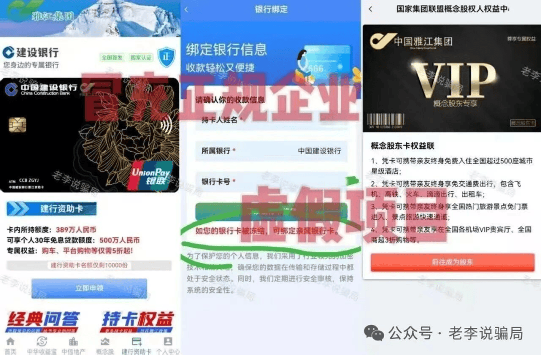 而另一个以发放“资助卡”为由套取个人信息的虚假项目同样也是冒用“雅江集团”名义推出的诈骗项目。
