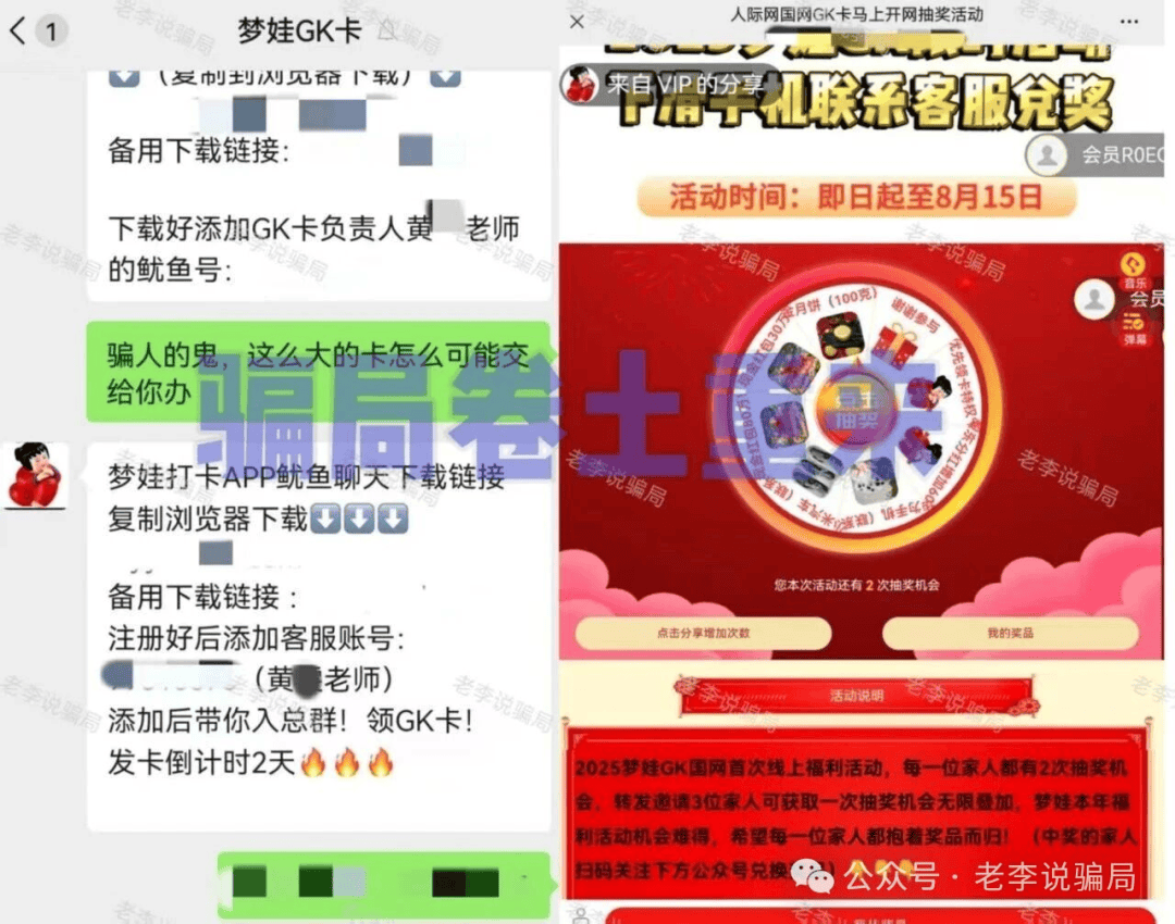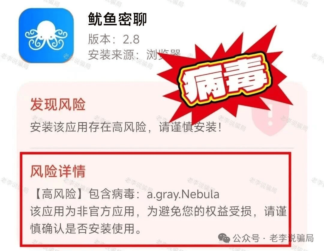 忽悠参与者下载病毒软件“鱿鱼密聊”,宣称缴纳3900元或32600元可获得所谓的“GK卡”。