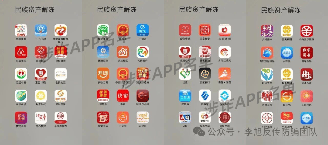 打着注册免费送国债股权、养老金、社保金等名义的民族资产解冻诈骗项目,下载时提示是带病毒软件,交易的账户均为第三方账户。