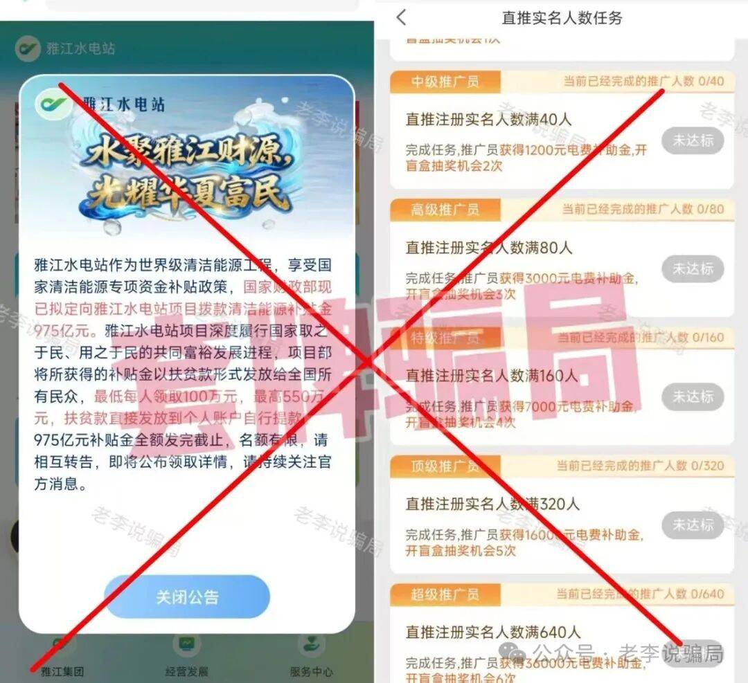 本月18日刚刚上线。冒用“雅江集团”名义推出虚假项目。谎称为参与者发放100万—500万扶贫款,忽悠参与者上传身份证实名注册。并根据邀请人数获得额外补助金。事实上,该项目与雅江集团毫无关系。
