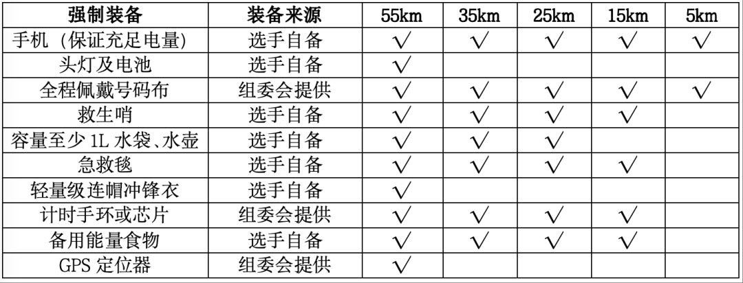 (4)芯片检测(虎王争霸组55公里、虎王挑战组35公里、五虎连攀组25公里、欢乐体验组15公里芯片检测)。