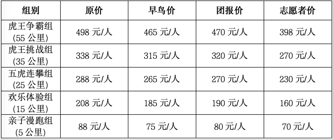3.志愿者价:参与对象包含有参加过2015-2024年五虎山越野赛中任意一届或2021年、2023年闽清杜鹃花海越野赛或2024年荆溪越野赛志愿服务的志愿者。