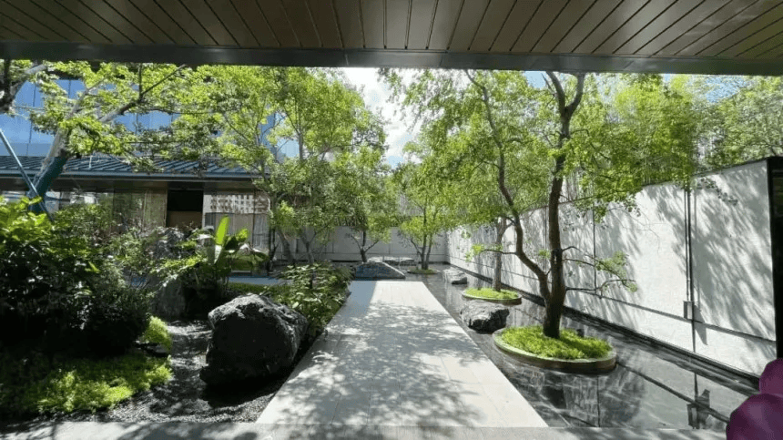 除了外部的生态资源,项目内部也打造了高品质的中式风格园林。园林以 “山水意境” 为设计理念,融入中央水景、林下休憩区、300 米环形步道等景观元素,营造出 “一步一景、移步换景” 的视觉体验。
