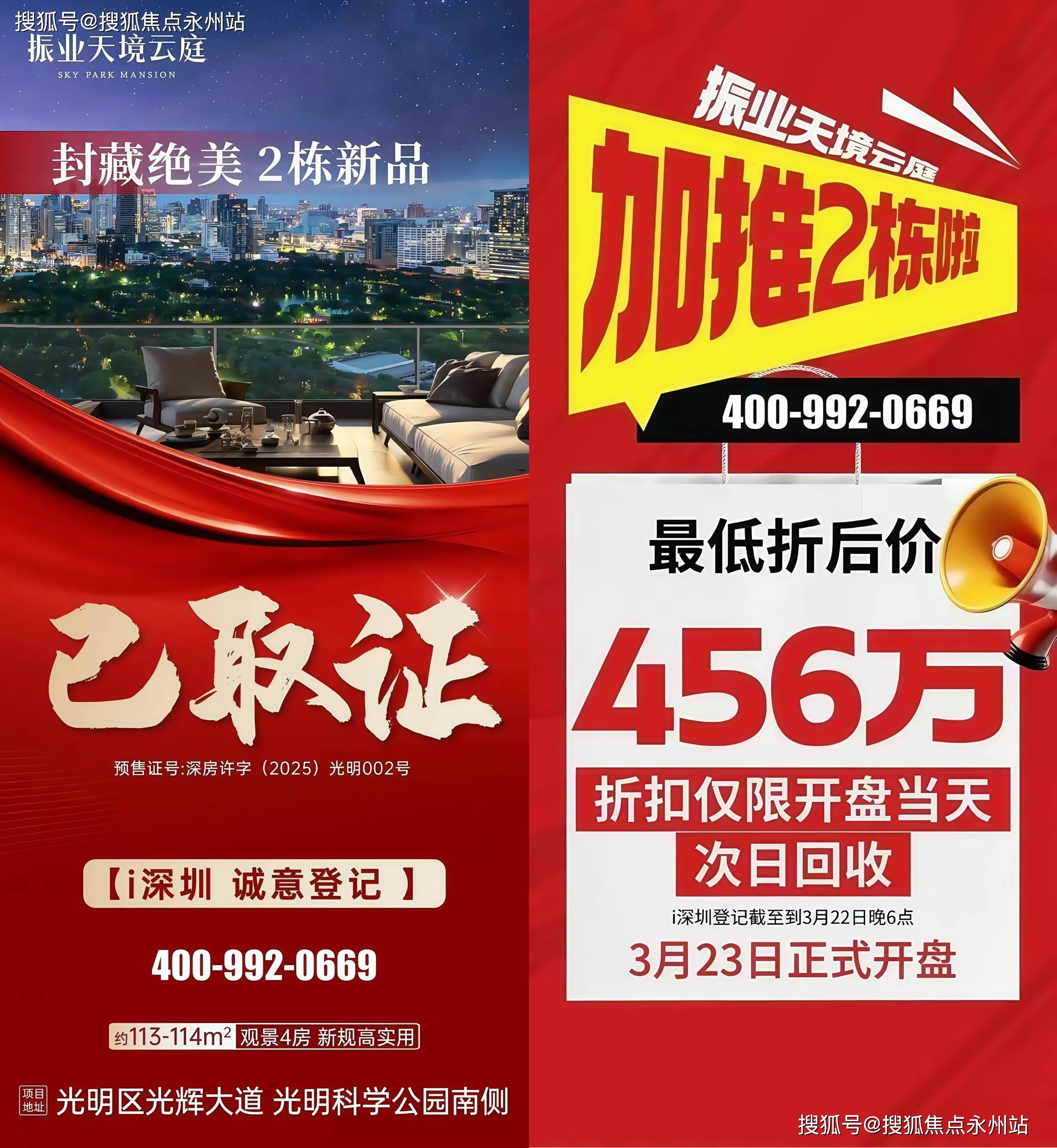 项目原是振业集团在2023年3月份以10.29亿+竞配3000平竞得的光明新湖A650-0385宗地,商品房毛坯限价4.93万/㎡,也是光明中心区板块首个一线看科学公园的新楼盘,东北向的视野景观非常靓,科学公园全貌一览无遗。(深圳振业天境云庭售楼处电话:)