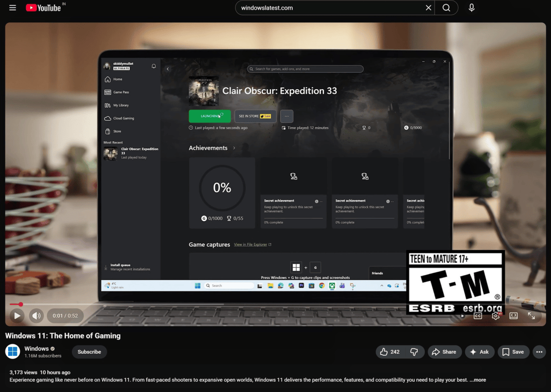 微软近期发布的一则宣传 Windows 11 的广告以“PC 竞技游戏之家(The Home of Gaming)”为主题,在展示多款热门游戏时,画面中的 Windows 11 任务栏上意外出现了谷歌 Chrome 浏览器图标,这一细节被网友迅速发现并广泛传播。