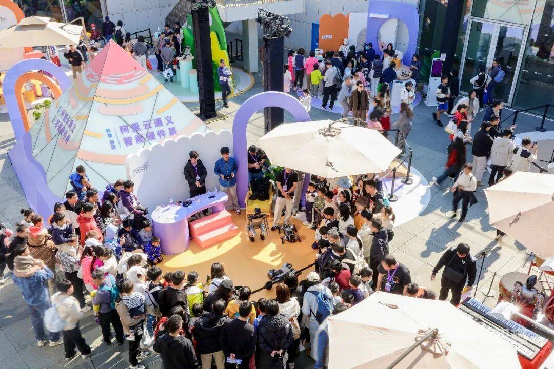 整个展馆5000多平米,不算大,但总共超1500件AI硬件新品亮相,都是从和通义多模态大模型家族合作的15万家智能厂商严格挑选出来的,其中180件在美国CES展同步首发。从Z世代到银发族,从办公软件到家庭娱乐,几乎涵盖了3C数码、家电、卫浴、玩具、乐器、健身器材、机器人、电动车、飞行器等所有消费领域。