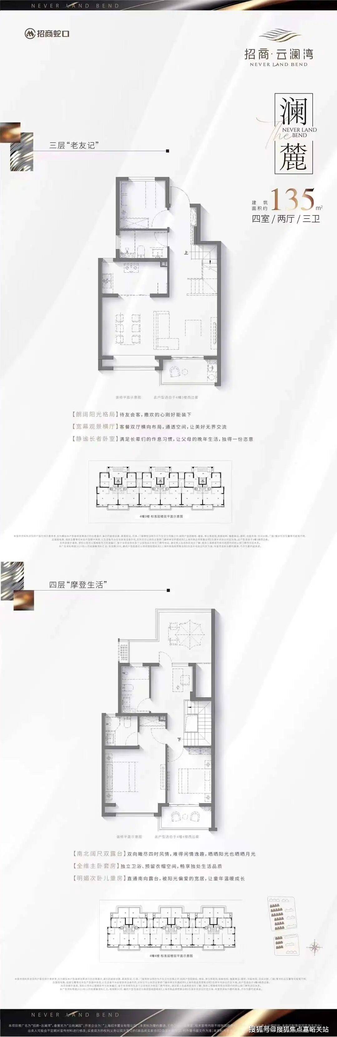 ,只有上下两叠的真叠墅,产品更加纯粹;以及全部无连廊的13F小高层,得房率更高,通透性更好!不管是中间套还是边套,舒适性、隐私性都更好,招商云澜湾