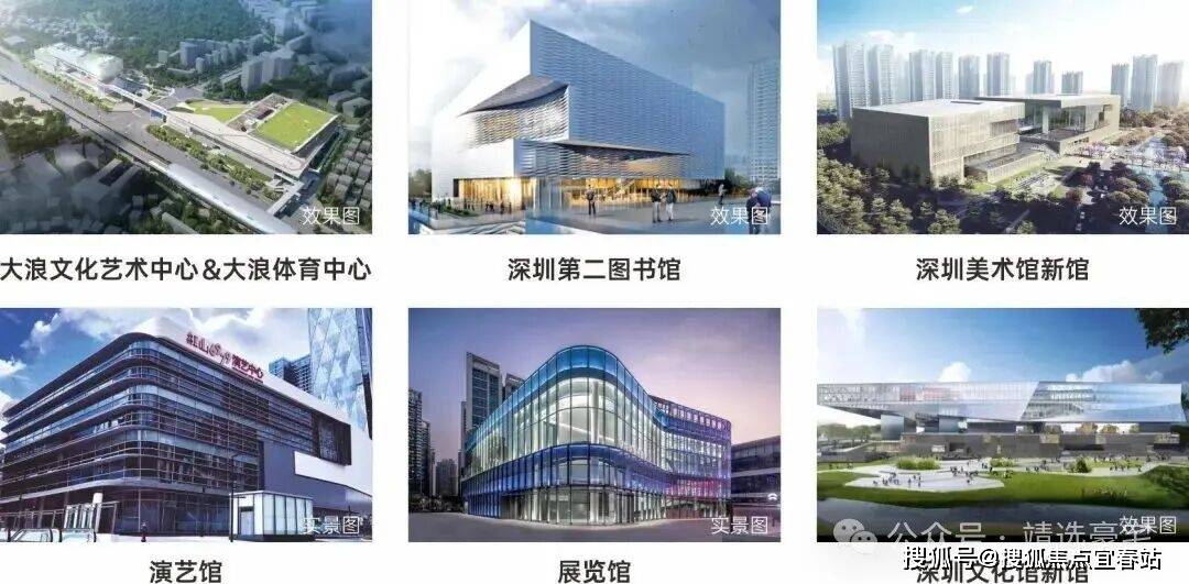“双子星”——大浪文化艺术中心、大浪体育中心(建设中);约10公里范围连接深圳第二图书馆(建设中) 深圳美术馆新馆(建设中) 演艺馆 展览馆(龙华市政四馆) 深圳文化馆新馆(建设中),简上体育综合体、深圳书城(龙华城)、龙华文体中心。
