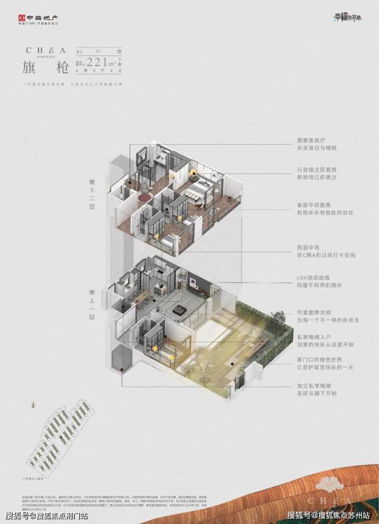 中海·月陇云岚售楼处电话☎️:【营销中心】(来电尊享优惠活动)以建面约210㎡的上叠“云雾”和建面约221㎡的下叠“旗枪”为例。月陇云岚解决了很多叠院上下叠共用电梯这个痛点,在这个项目里,所有的户型都是私梯入户的。下叠入户口在南向花园,上叠在一楼也有北向私梯入户花园空间。