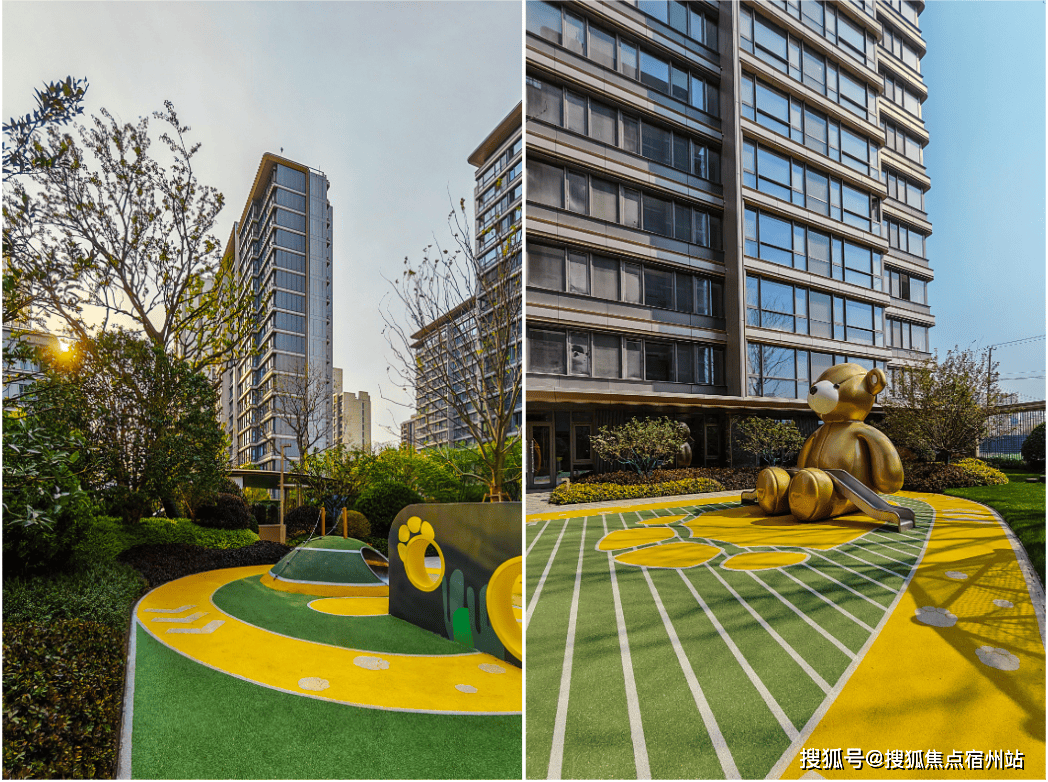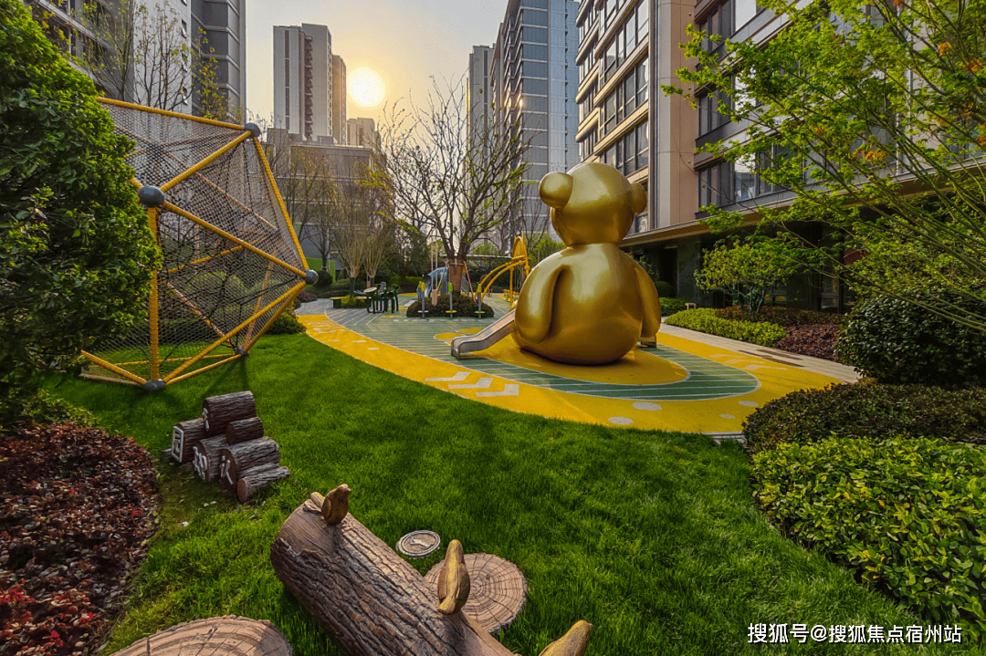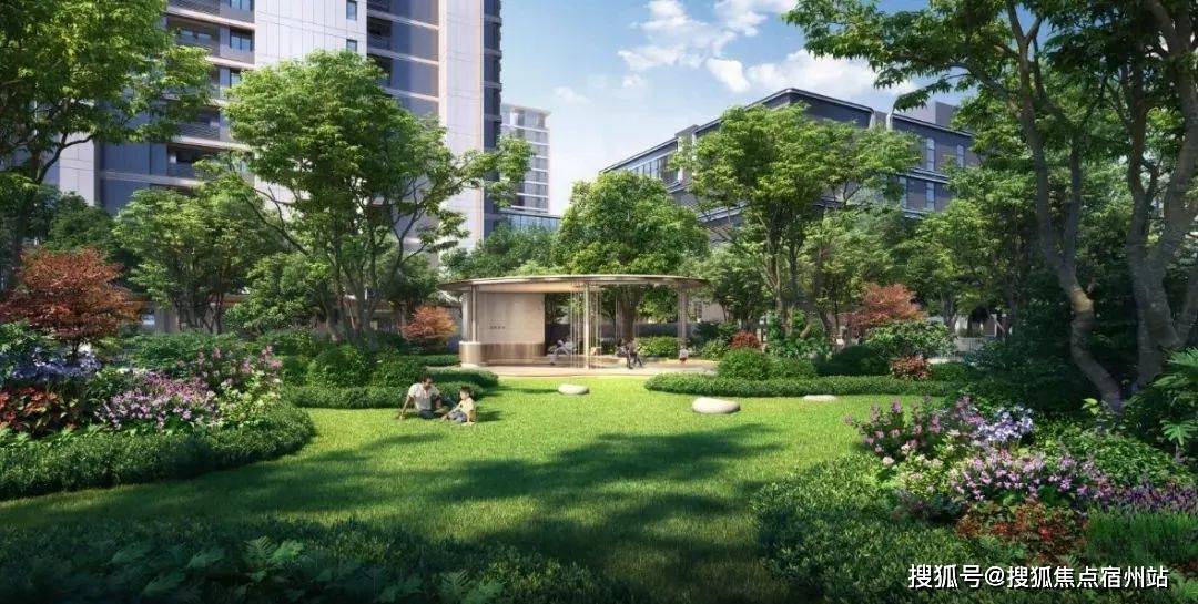 六大林系主题生活花园也是实景,包含中央阳光草坪与会客廊架、儿童主题活动区及四大全龄架空层等,一方面景观丰富,另一方面触发业主更多的停留和遇见的可能性,让社交在自然而然中发生。